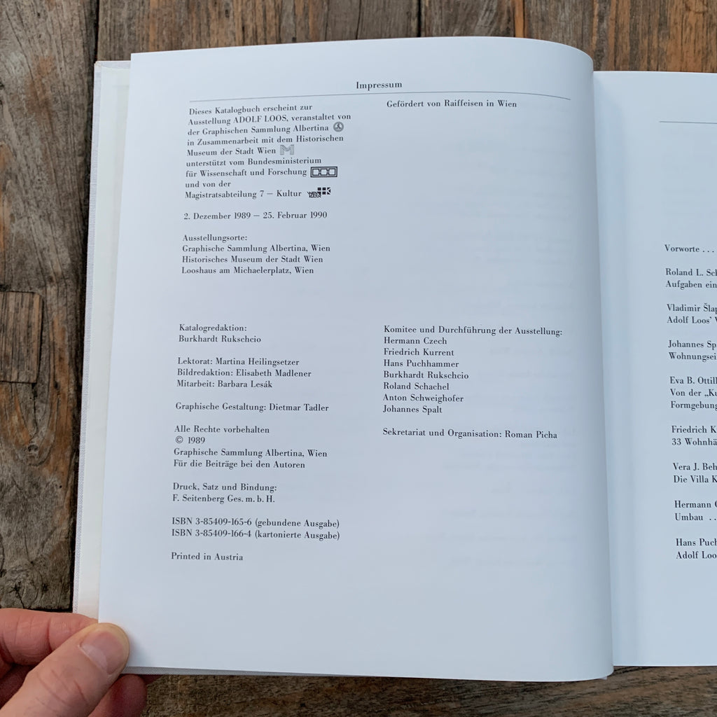 Ausstellung ADOLF LOOS vom 2. Dezember 1989 - 25. Februar 1990