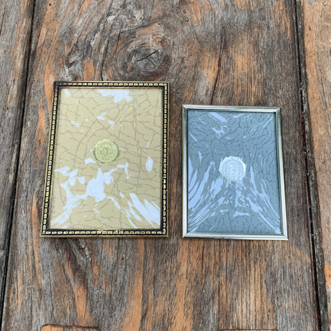 Beide Rahmen mit Klebeetikett: A/S, RJ, Rammefabriken Jyden, Garanti Mærke