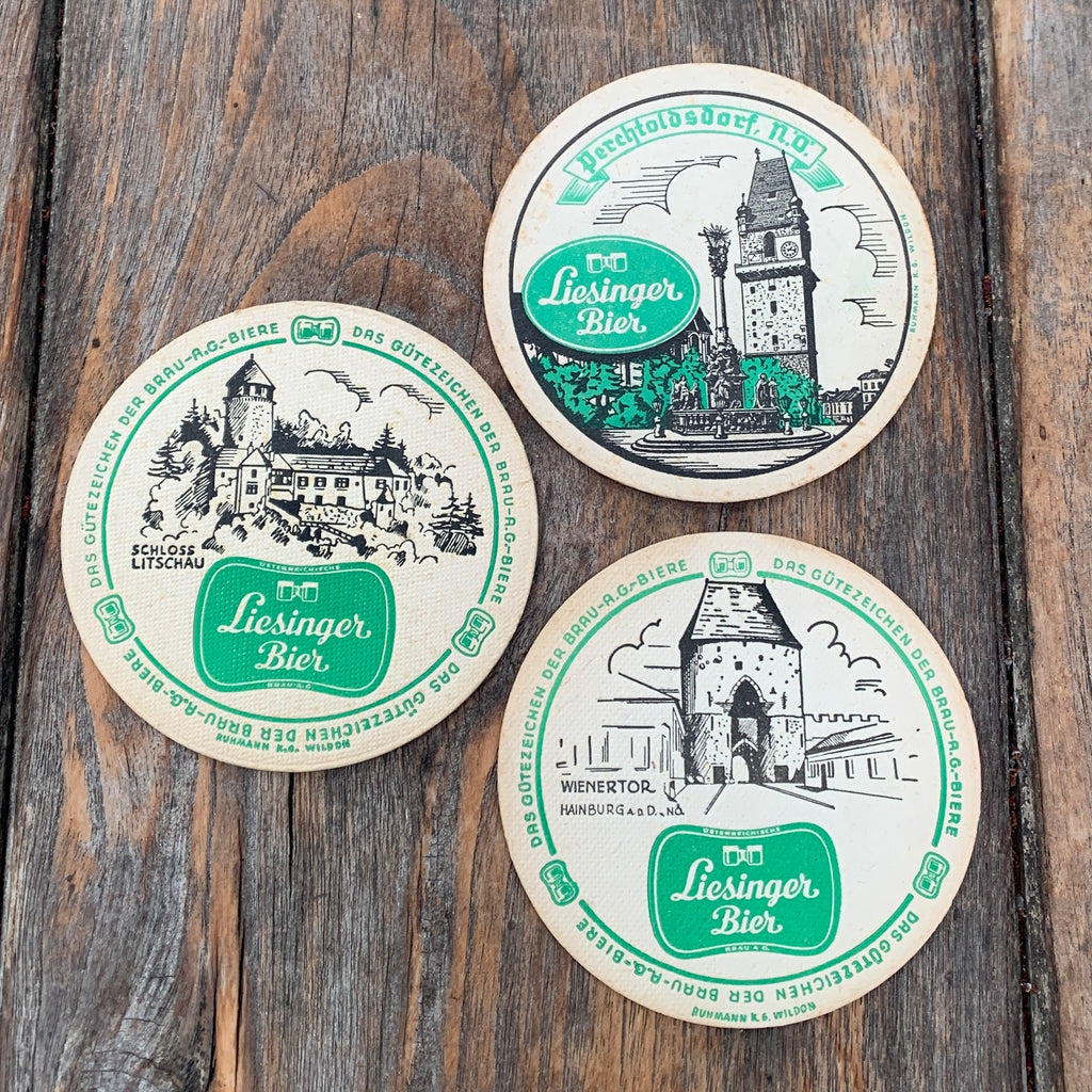 Glas in Top Zustand, Bierdeckel mit Gebrauchsspuren