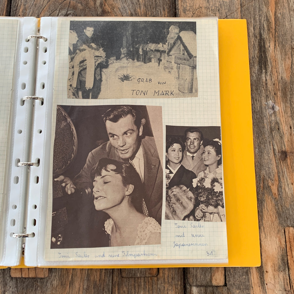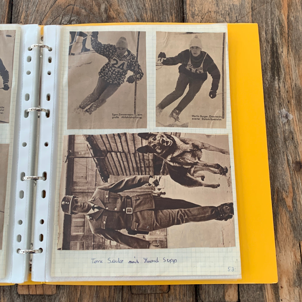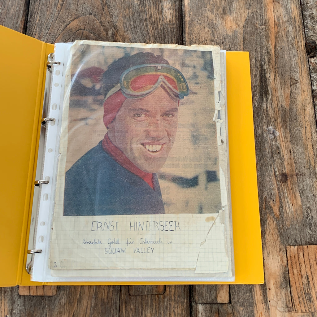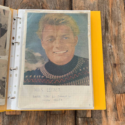 Mappe mit Zeitungsausschnitten versch. Skiläufer:innen aus den 1950/60er-Jahren