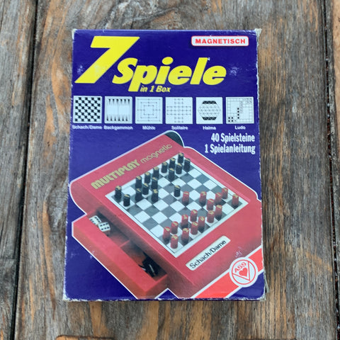 1 Spielgerät mit 7 Spielen (Schach, Dame, Backgammon, Mühle, Solitaire, Halma, Ludo)