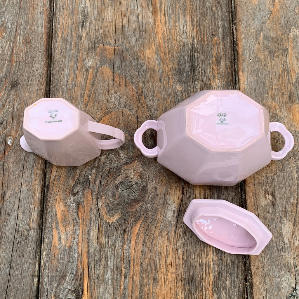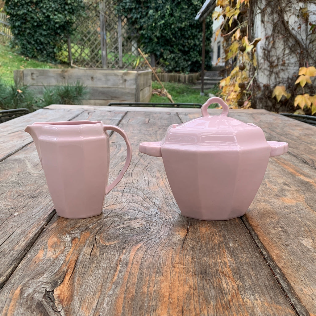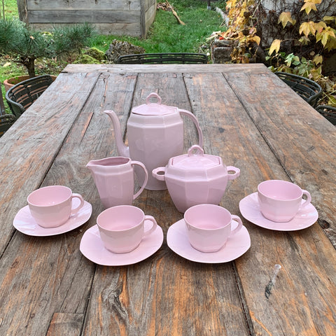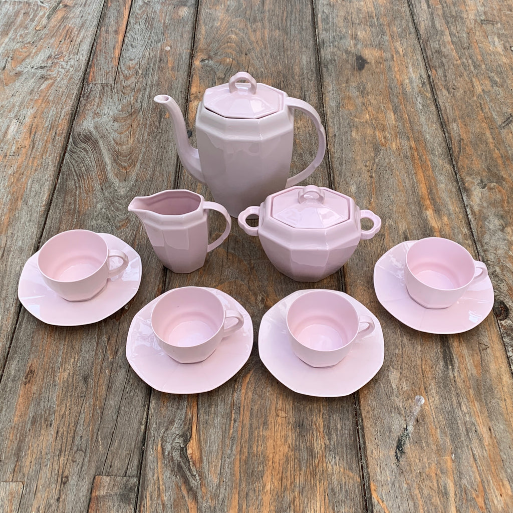 11-teiliges rosa Art Deco Kaffeeservice aus den 1930er-Jahren