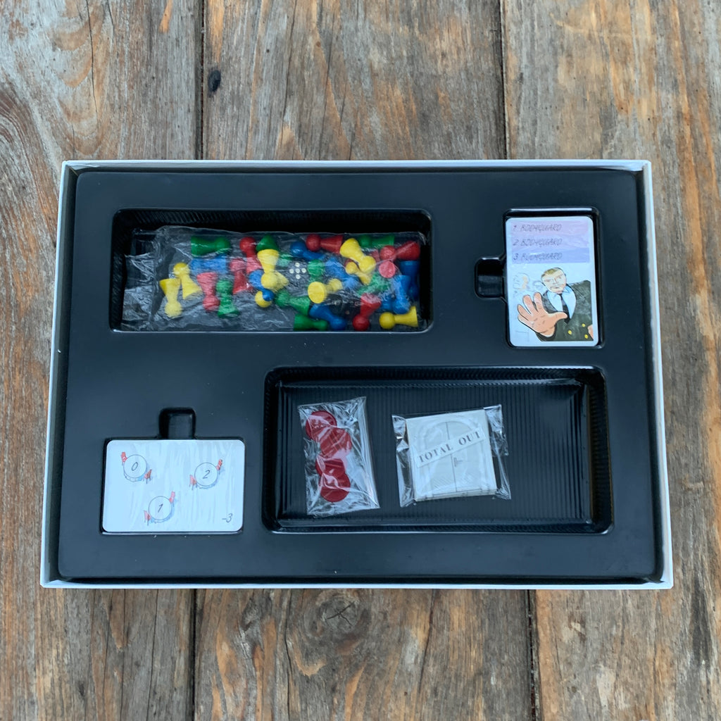 4 "Total OUT"-Kärtchen und dazu 4 Plastikfüßchen