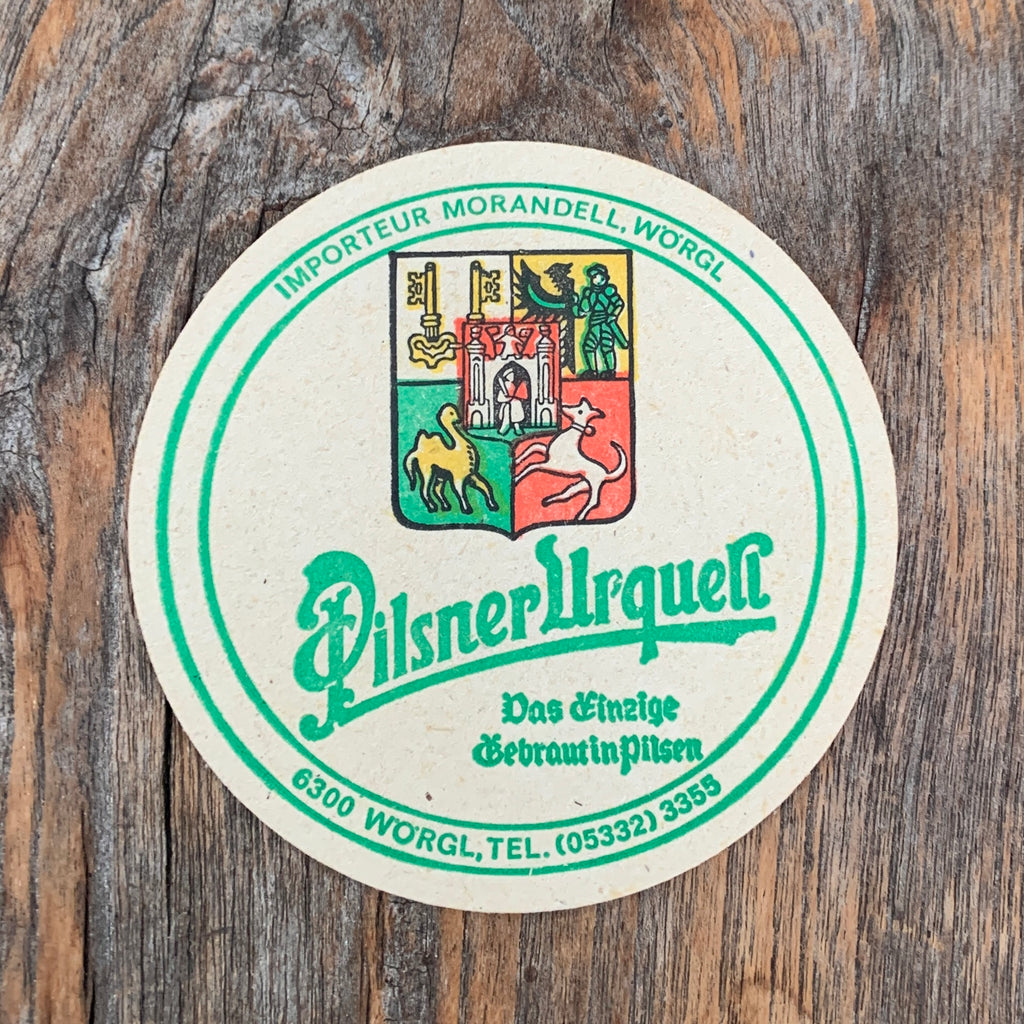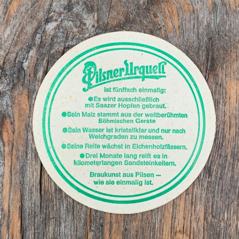 Glas in sehr gutem Zustand, Bierdeckel mit Gebrauchsspuren.