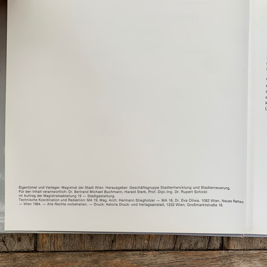 Herausgeber: Magistrat der Stadt Wien - Geschäftsgruppe Stadtentwicklung und Stadterneuerung, Magistratsabteilung 19 - Stadtgestaltung, 1984