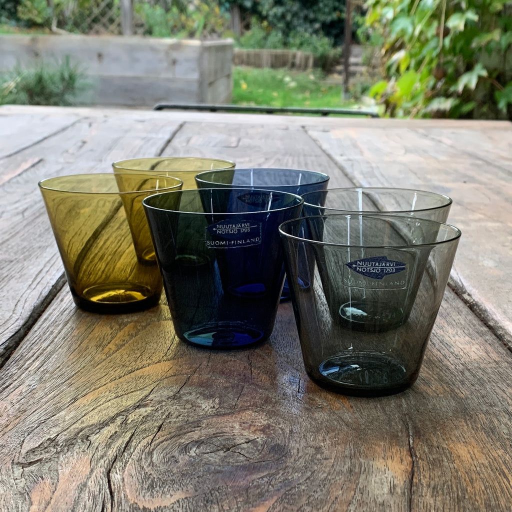 3 Gläser mit Klebeetikett: Nuutajärvi Notsjö 1793, Suomi - Finland