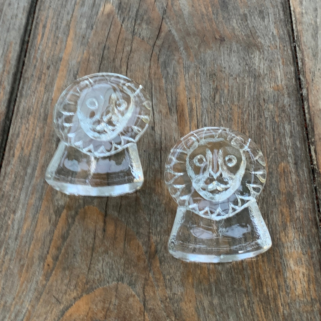 1 Löwe in Top Zustand, 1 Löwe mit Absplitterung Nase - siehe Scan