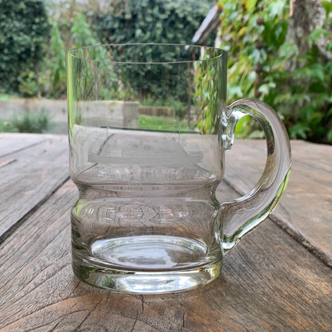 Glas mit Abbildung des Turbinenschiffs TS Adolph Woermann