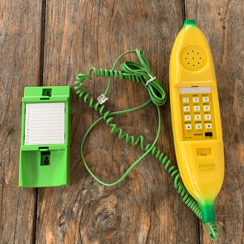 - Telefon in Bananenform (27,5 x 6,5 x 7,0 cm) inkl. Kabel (Länge ca. 3,0 m)