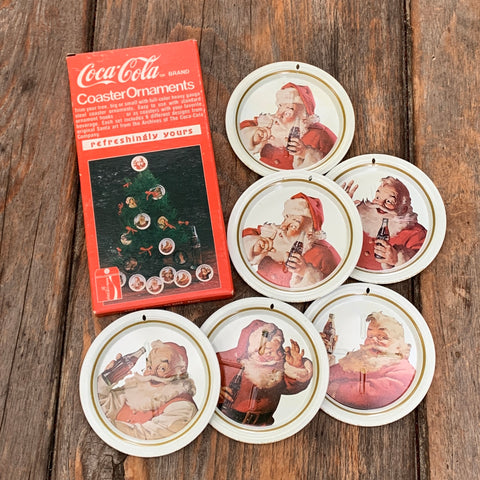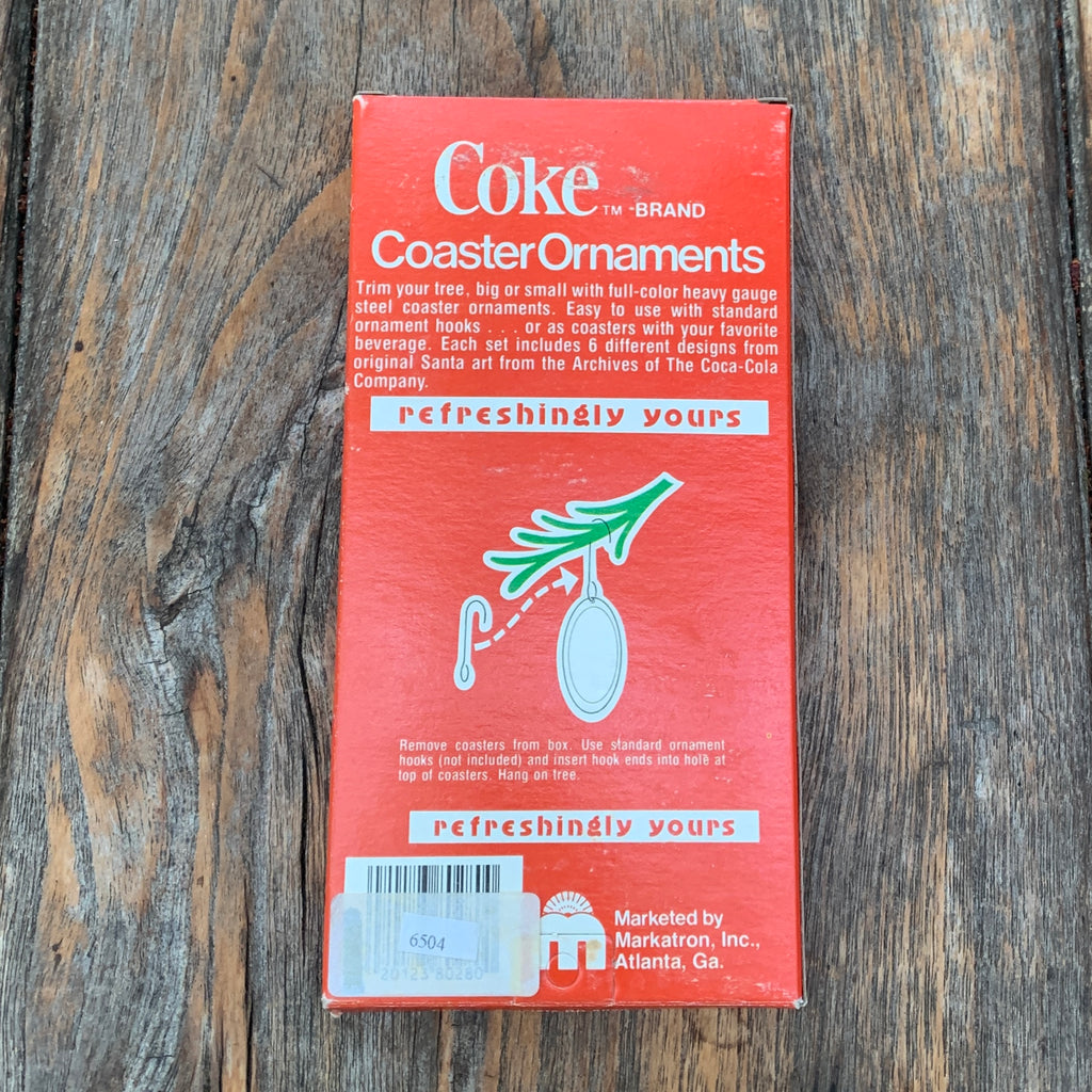 • Glasuntersetzer (Metall): 6 Stück zum Aufhängen (Christbaum) im Originalkarton von The Ohio Art Company, Ø 9,0 cm