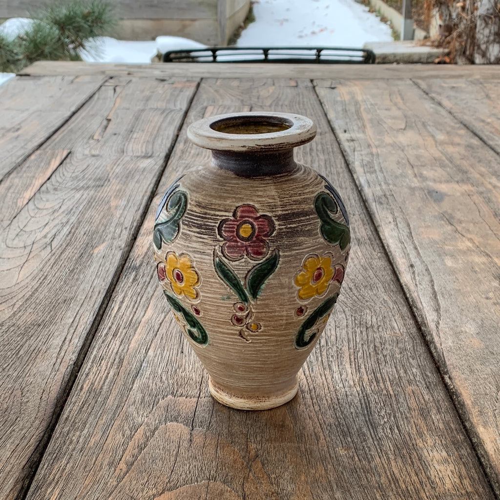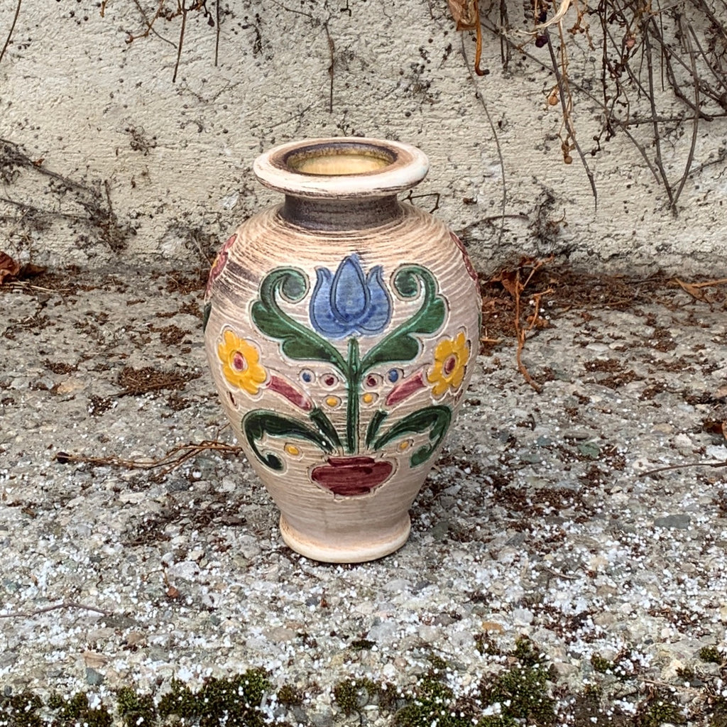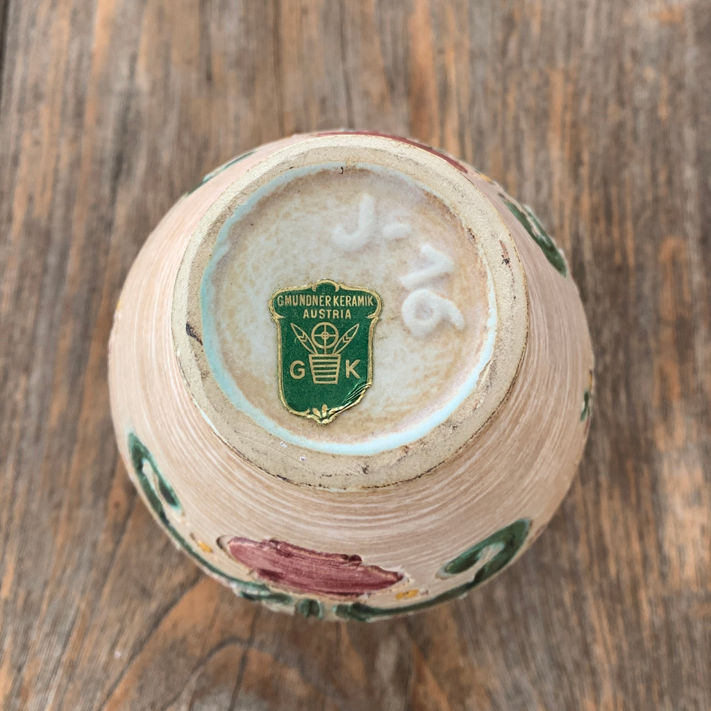Klebeetikett: G K, "Blumentopf", Gmundner Keramik Austria (1970-76)