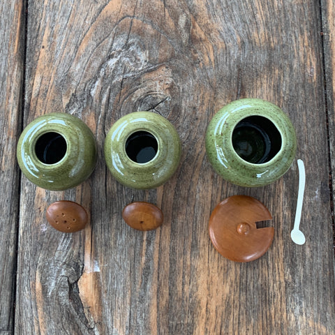 - Salzstreuer aus Keramik mit Holzdeckel, Ø 5,5 cm, Höhe 5,5 cm